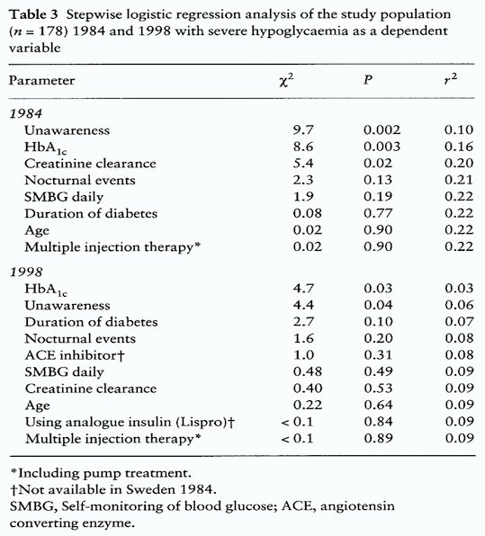 Ytterligare en lärdom från denna uppföljning var att hos de individer (n=8) som deltog vid båda dessa undersökningstillfällen hade tillbuden med allvarlig hypoglykemi nära fördubblats under de 14 åren(51). Detta illustrerar att ju längre man lever med sjukdomen insulinbehandlad diabetes, desto vanligare blir problemet hypoglykemi! Detta återkommer jag till nedan.